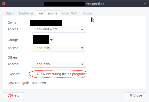 This seems like more of a UI issue than anything. Could be fixed by simply presenting the user with a prompt asking whether they want to allow this file to execute as a program if it's missing the permissions.